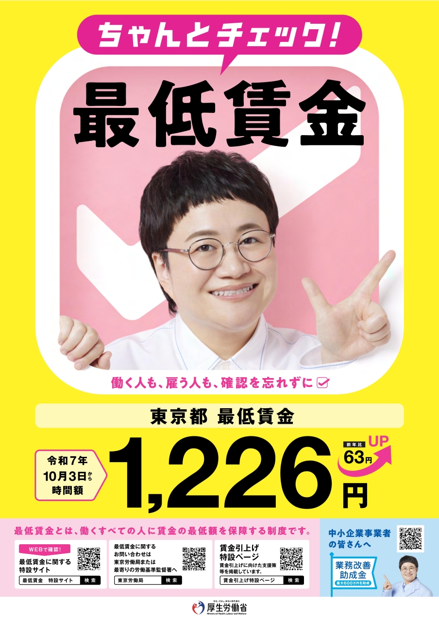 2025年10月3日より、東京都の最低賃金は1,226円です